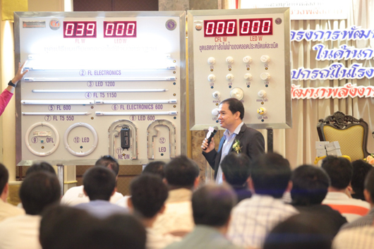 ดร.ถนัด เกษประดิษฐ บรรยายเรื่องหลอด LED พร้อมเปรียบเทียบการใช้ไฟฟ้า ข้อดี และข้อเสียให้กับผู้ร่วมสัมมนาเข้าใจอย่างชัดเจน